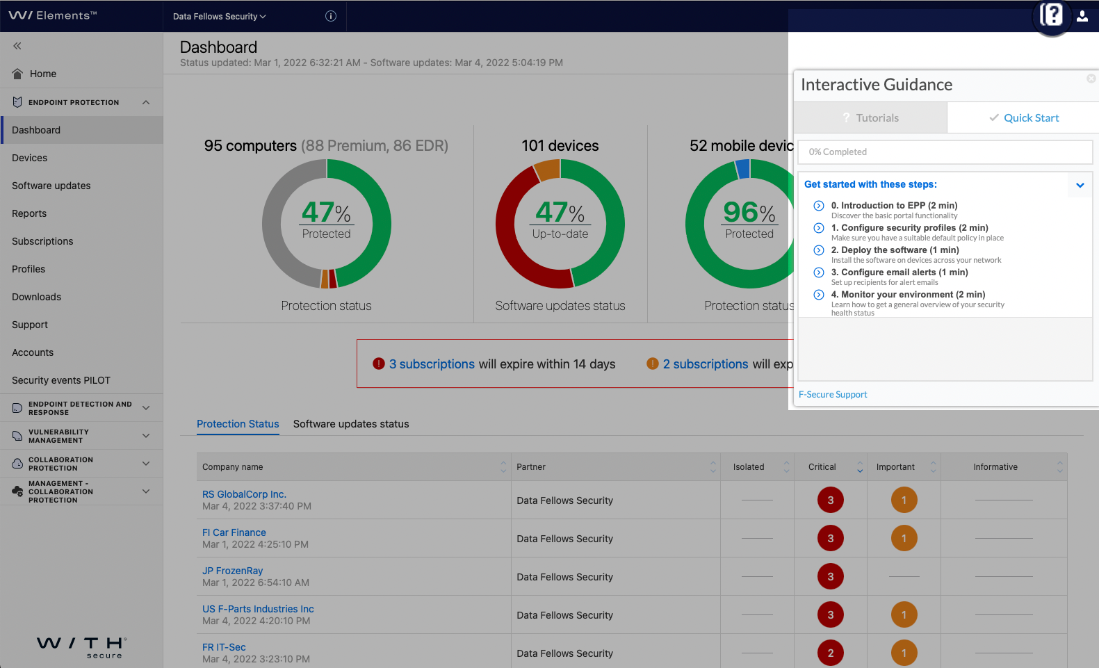 Erste Schritte mit dem Produkt WithSecure Elements Endpoint Detection and Response.