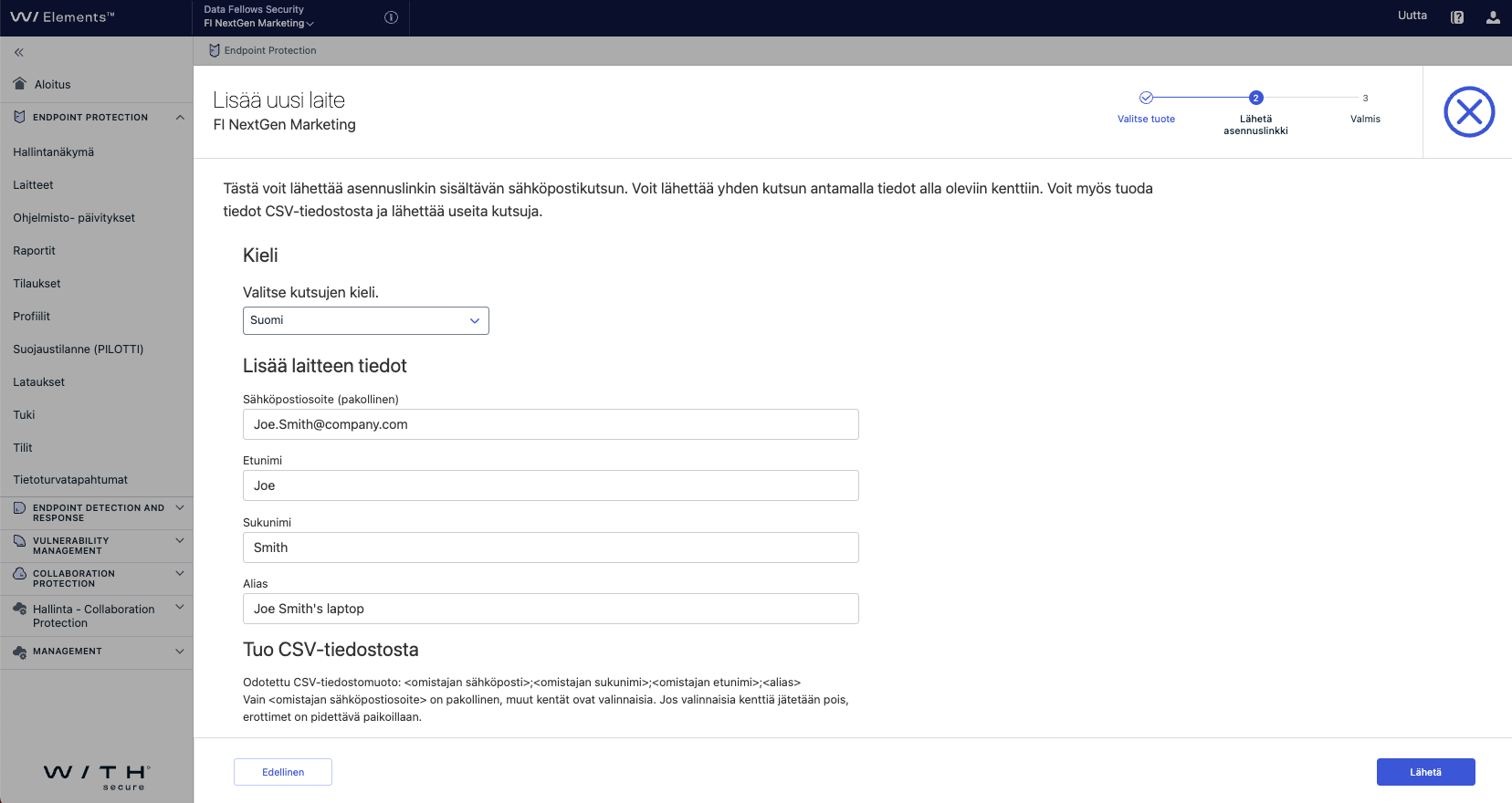 Vaihe 2 - Kirjautuminen WithSecure™ Elements Security Centeriin