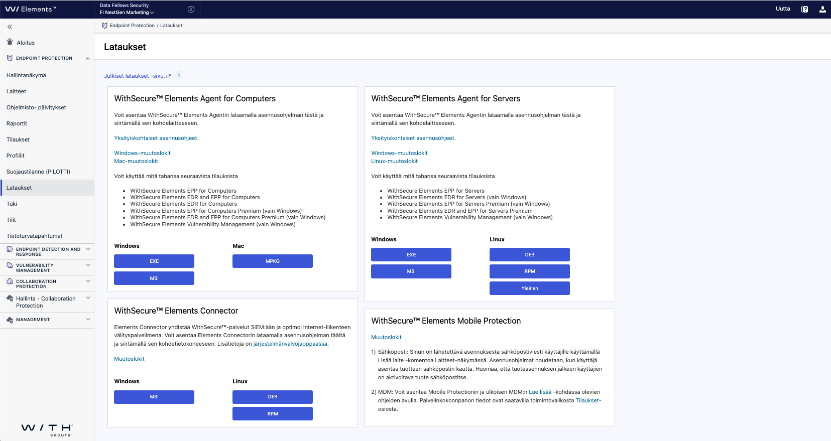 Elements Endpoint Protection -kohdassa valitse Lataukset.