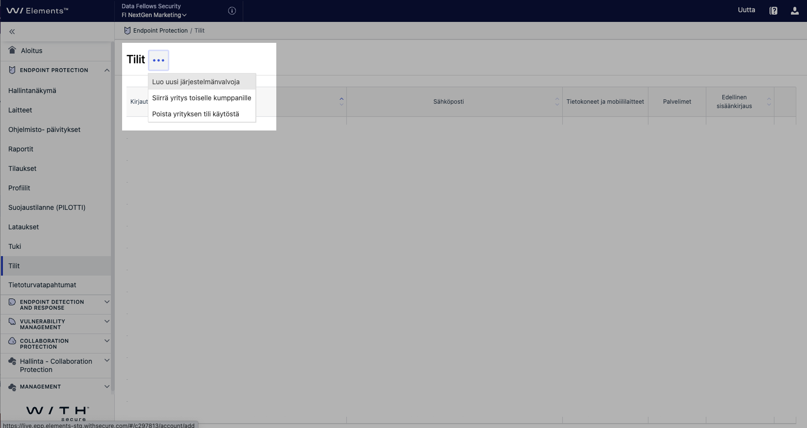 Vaihe 2 - Kirjautuminen WithSecure™ Elements Security Centeriin
