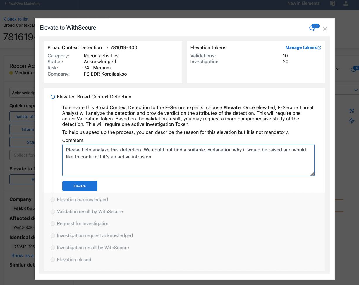 Elevate to WithSecure™ で、Elevateを選択ください。